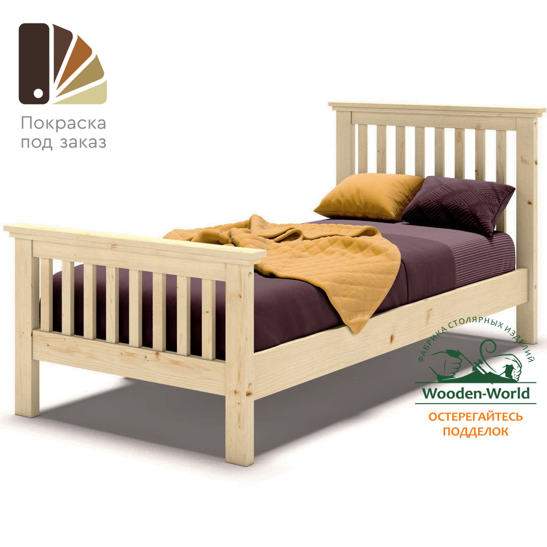 Мебель производства Wooden-world поставляется в шлифованном виде. Таким образом она подготовлен под покраску любыми материалами. Но при желании может использоваться без покраски.
