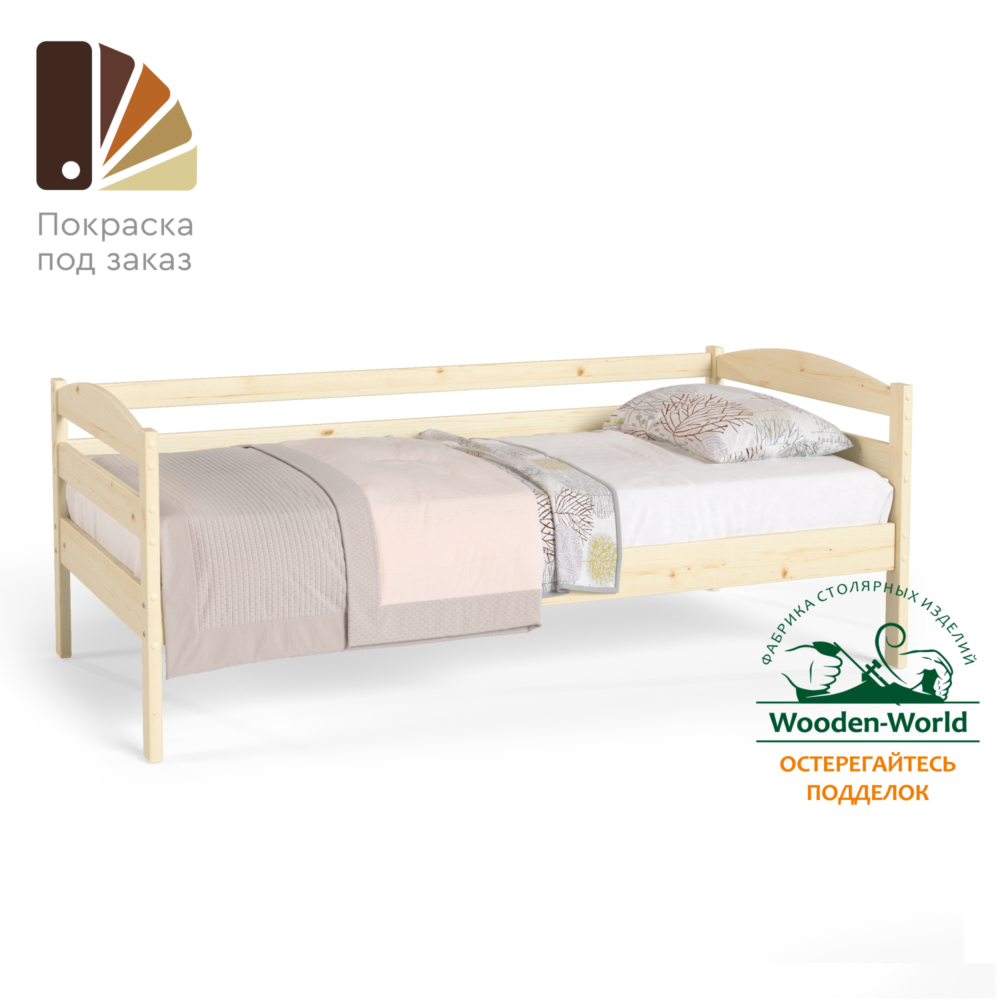Мебель производства Wooden-world поставляется в шлифованном виде. Таким образом она подготовлен под покраску любыми материалами. Но при желании может использоваться без покраски.