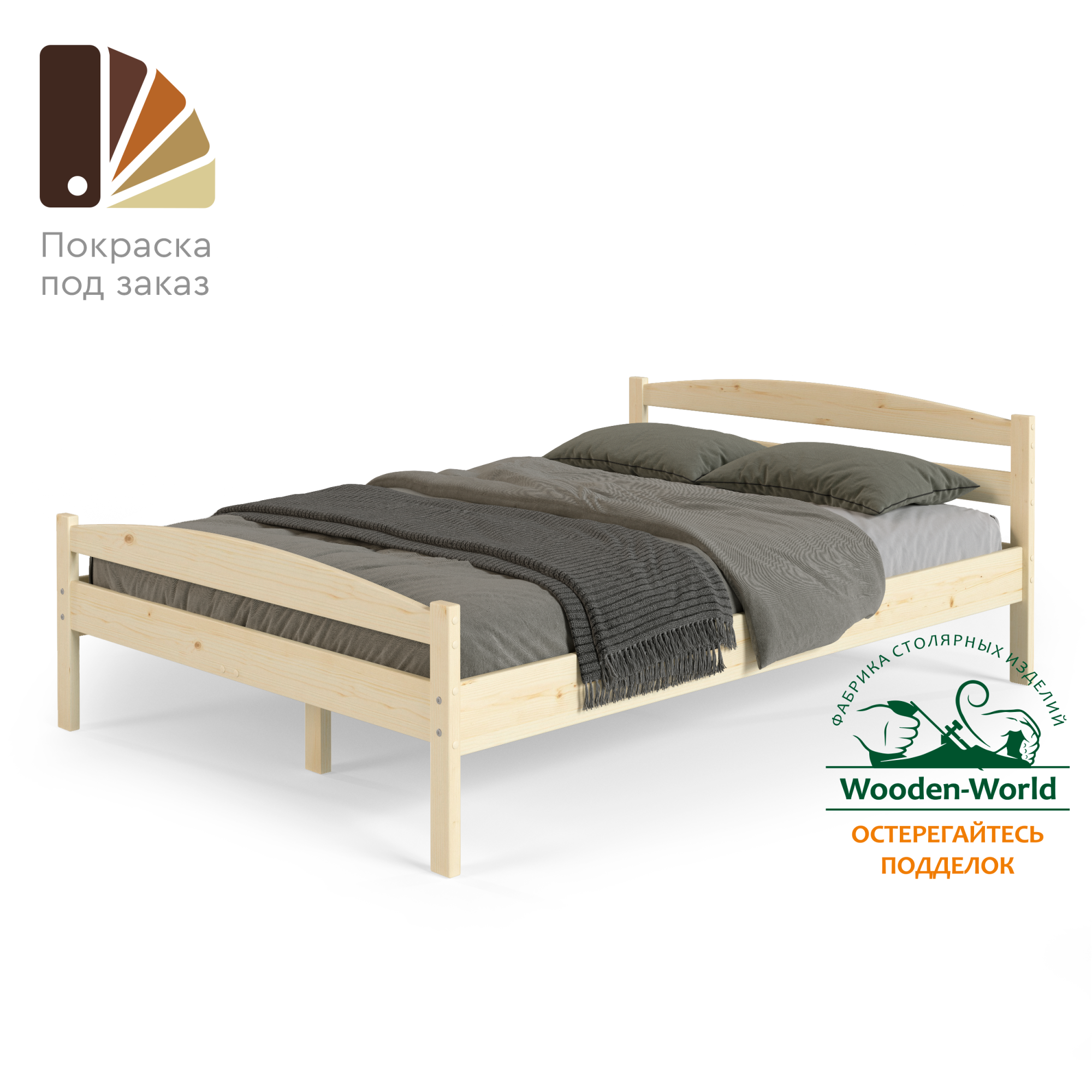 Мебель производства Wooden-world поставляется в шлифованном виде. Таким образом она подготовлен под покраску любыми материалами. Но при желании может использоваться без покраски.