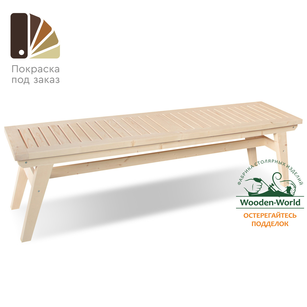 Мебель производства Wooden-world поставляется в шлифованном виде. Таким образом она подготовлен под покраску любыми материалами. Но при желании может использоваться без покраски.
