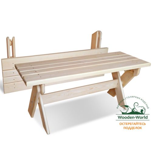 Лавка раскладная, выполнена из массива дерева (хвои, ели).