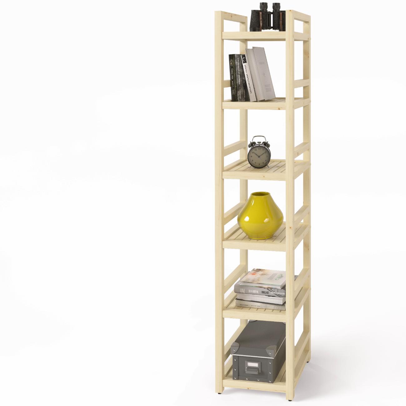 Стеллажи этой серии выполнены из массива ели, которая имеет значительные преимущества перед сосной: